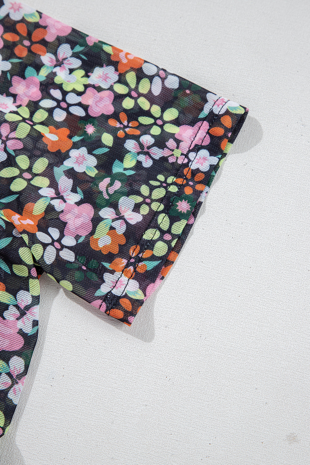 - Embrace a touch of bohemian charm with this t-shirt with camisole, featuring delicate floral prints on sheer mesh fabric.