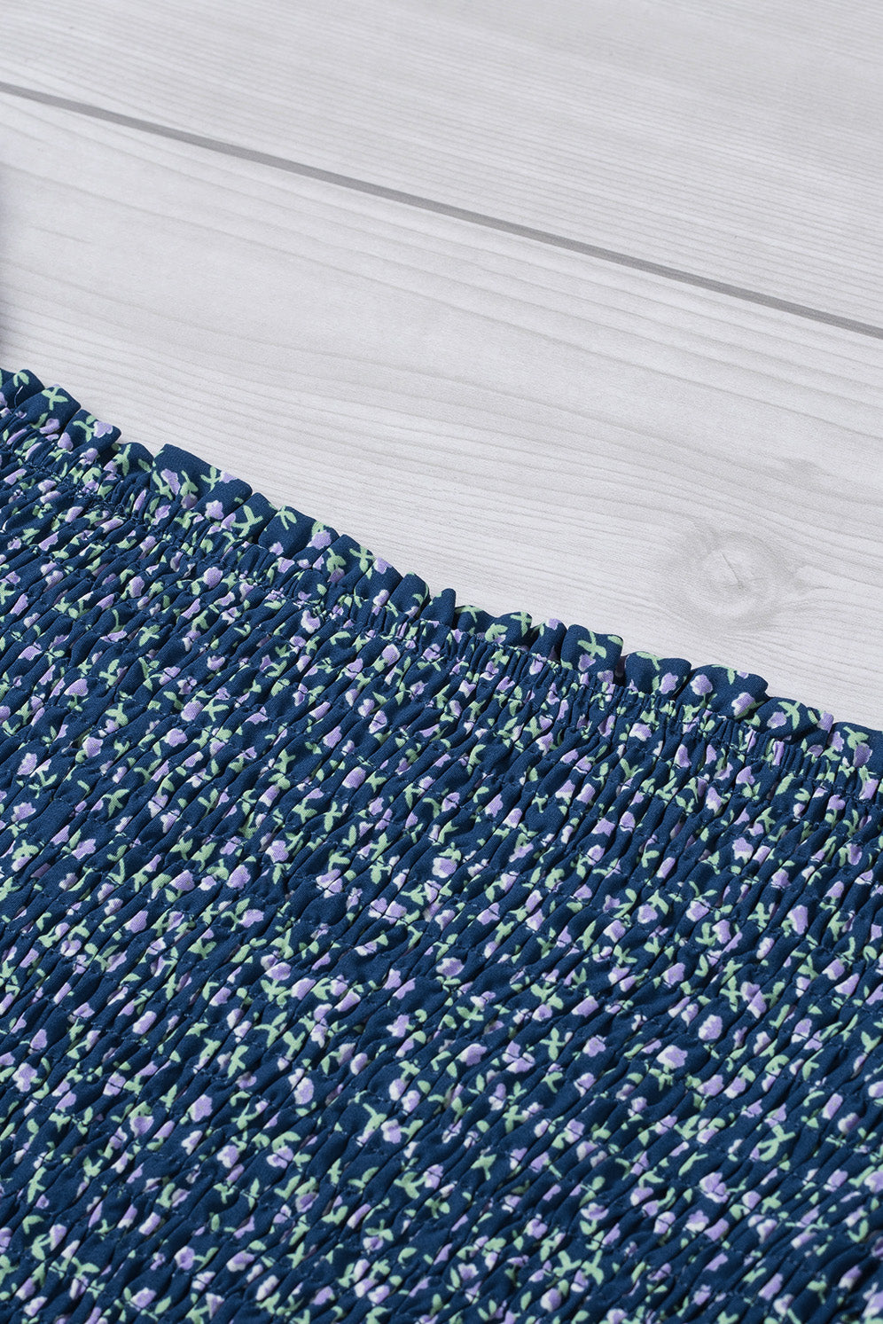 Blue Ditsy Floral Print Square Neck Smock Top
