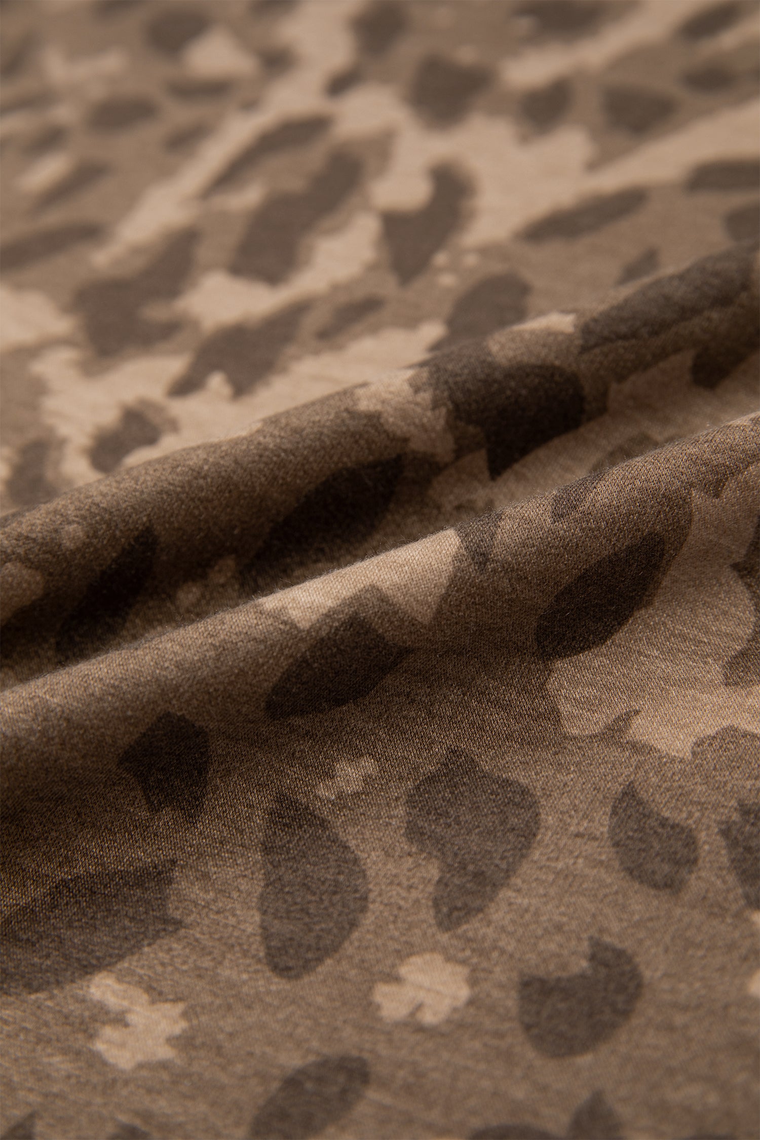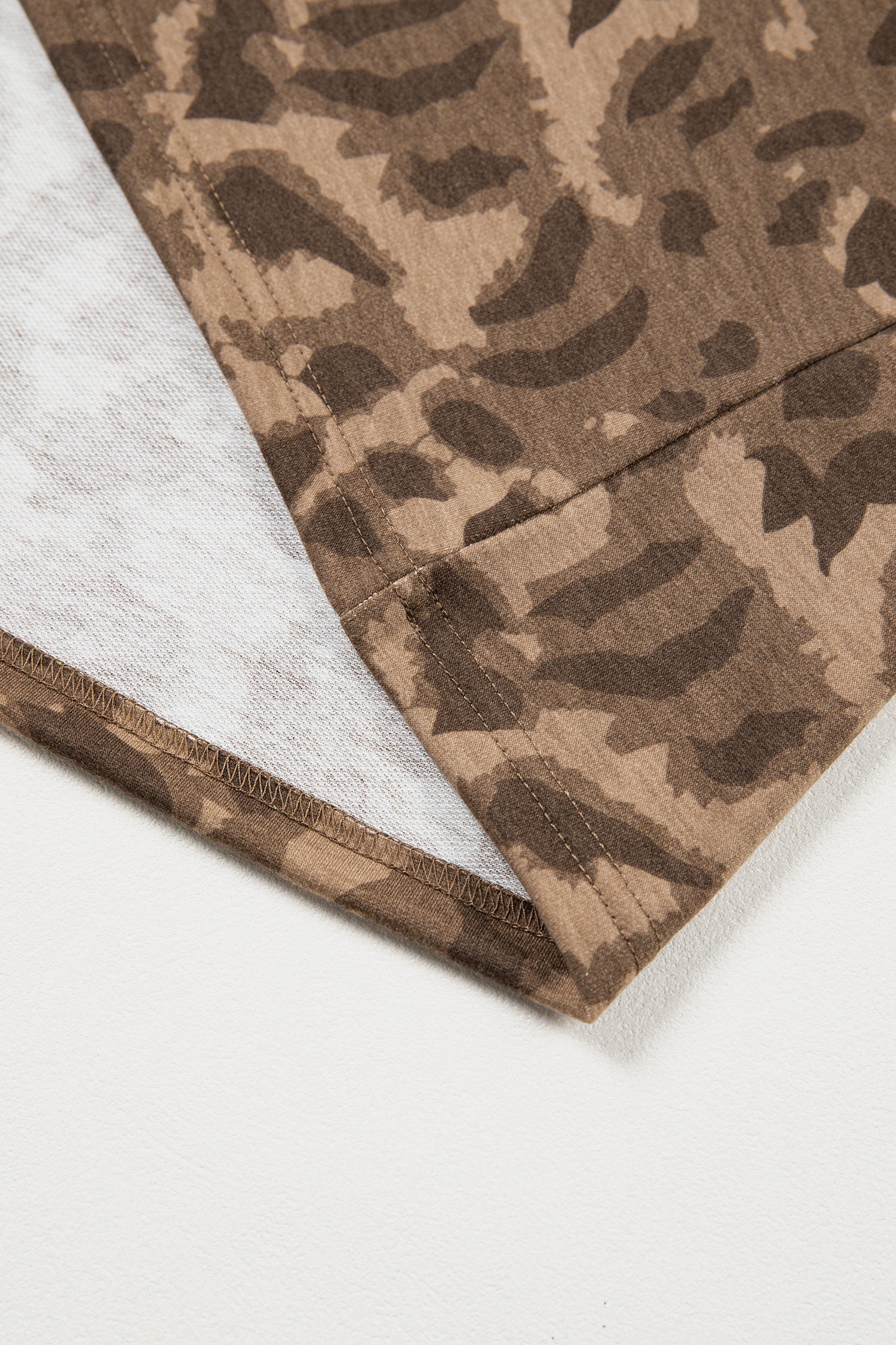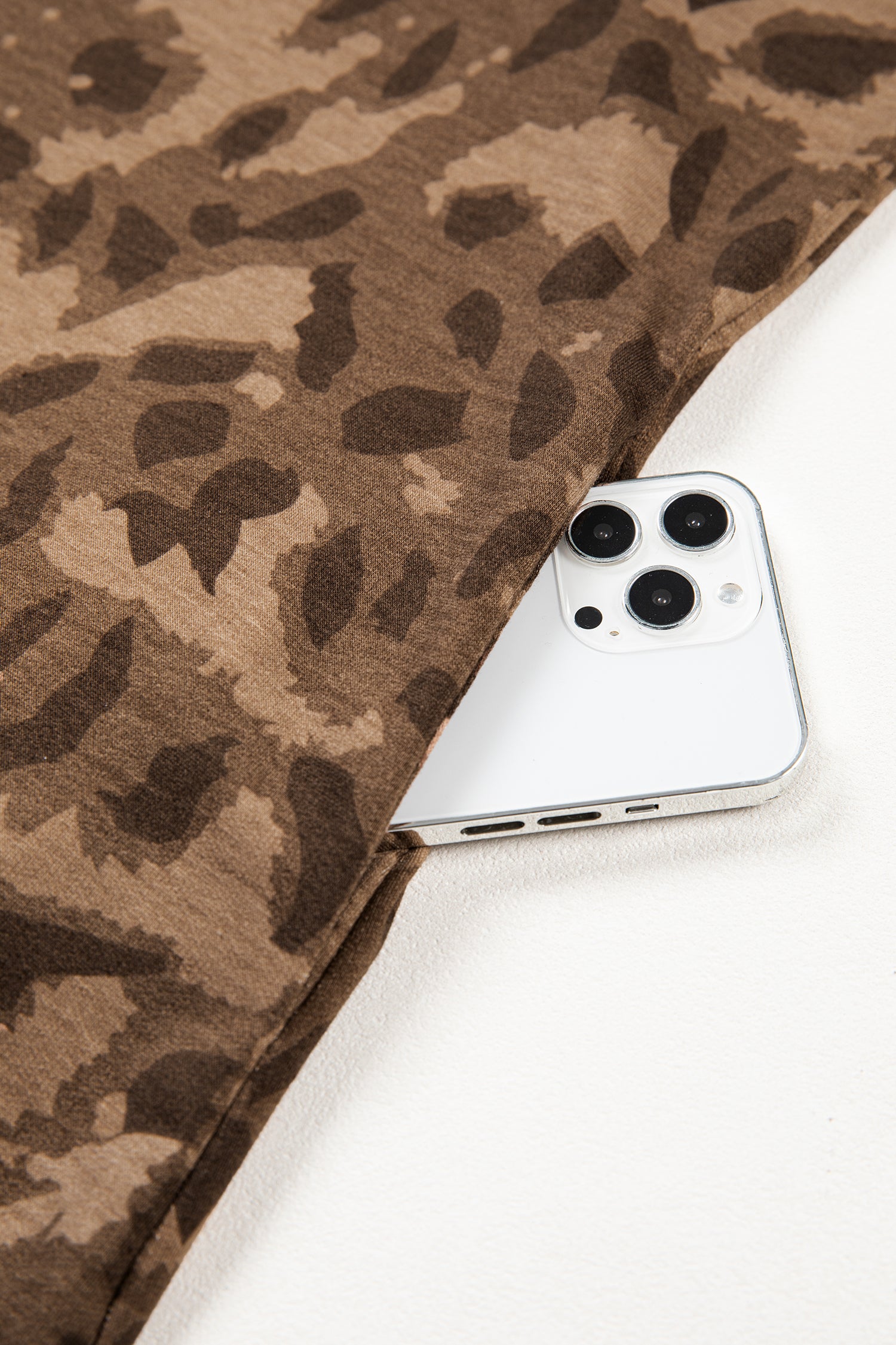 Brown Loose Contrast Striped Accent Leopard T Shirt Mini Dress with Pockets