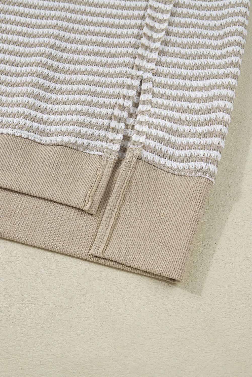 Brown Plus Size Stripe Ribbed Trim Drop Shoulder Long Sleeve Oversized Top