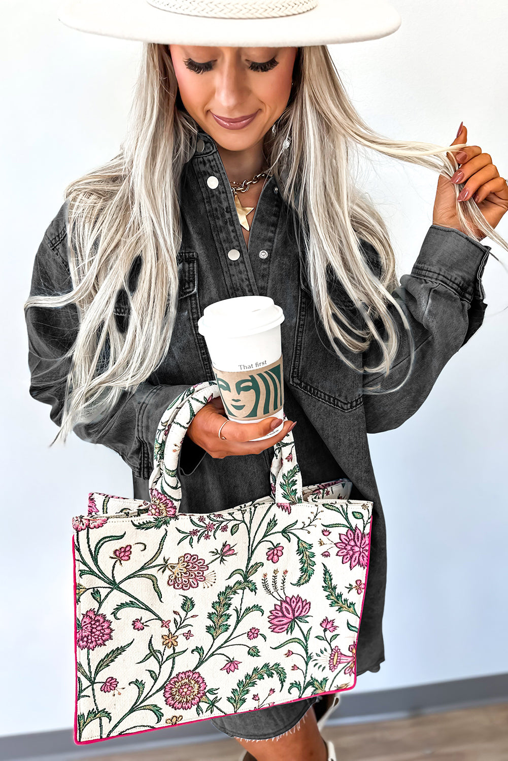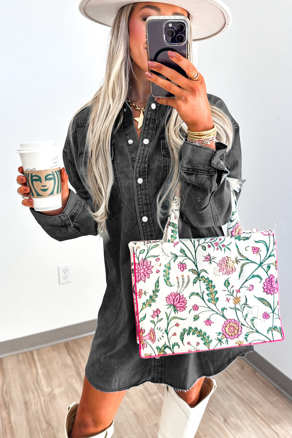 Medium Grey Chest Pocket Raw Hem Denim Loose Shirt Dress
