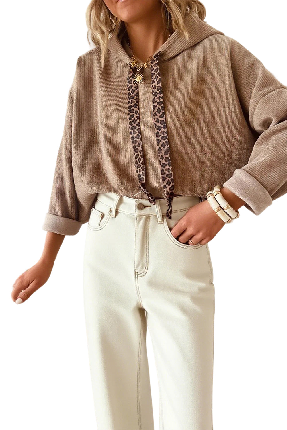 Parchment Thermal Textured Leopard Drawstring Baggy Hoodie