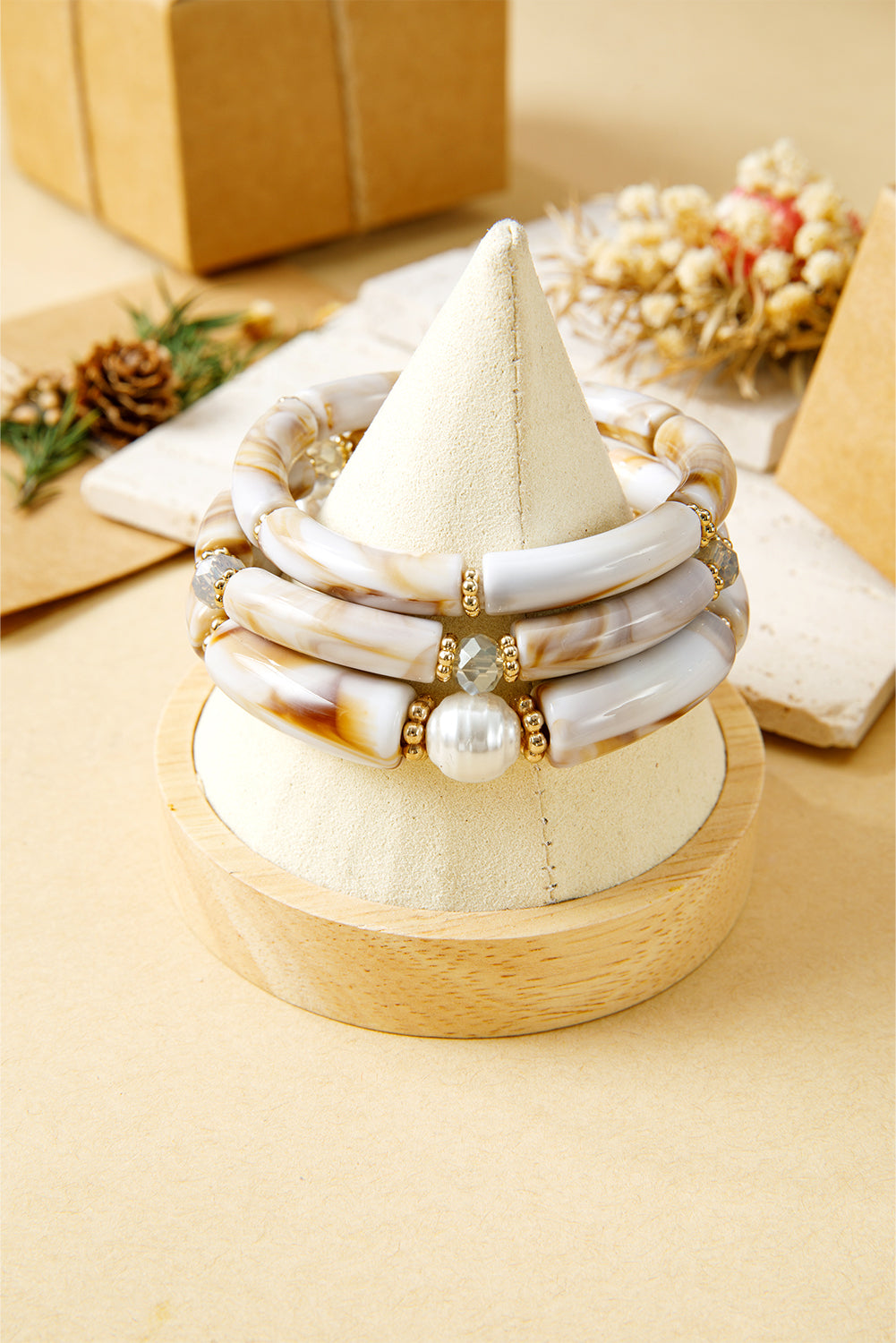 White 3pcs Boho Vintage Acrylic Beaded Bracelet Set