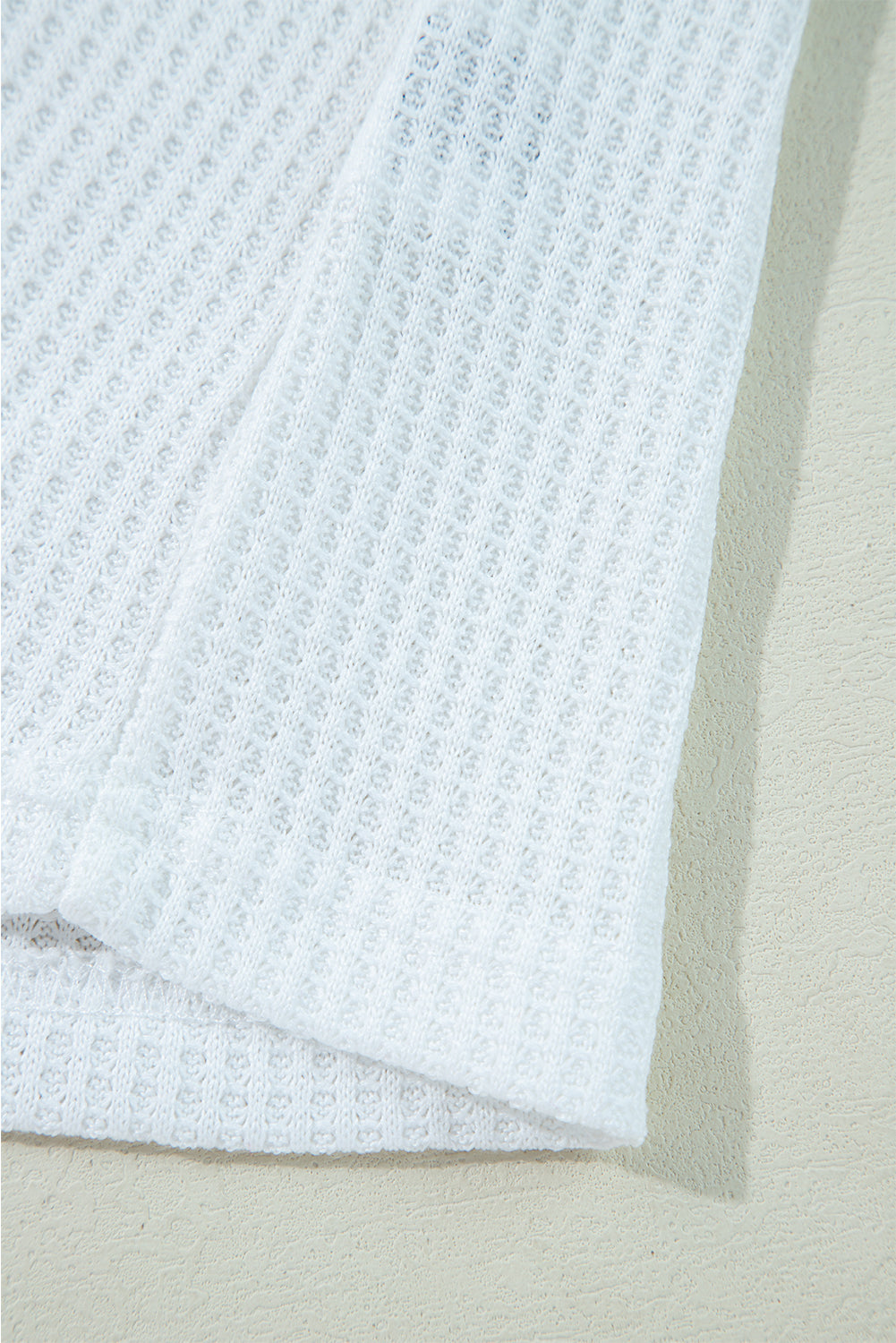 White Leopard Waffle Knit Patchwork Button V Neck Top